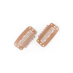 Średni klips symetryczny do mocowania systemów, dopinek i peruk. Klips jest w kolorze jasnego brązu. Ma zapinającą część w typie „fala” oraz gumkę zabezpieczającą. Zapina się łatwo i cicho.